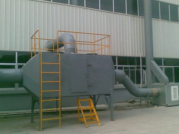 活性炭吸附塔是处理有机废气、臭味处理效果最好的净化设备。该设备主要由活性炭层和承托层组成。有机气体通过风机的动力进入塔体,经过活性炭,有机气体分子被吸附于活性炭表面,经过滤的洁净气体进入排气系统达标排放。
